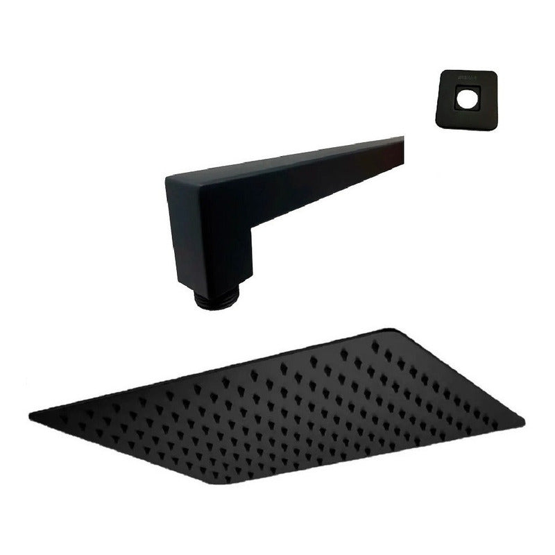 Regadera Cuadrada Tipo Lluvia 30x30cm Con Brazos Y Chaptones Negro Mate