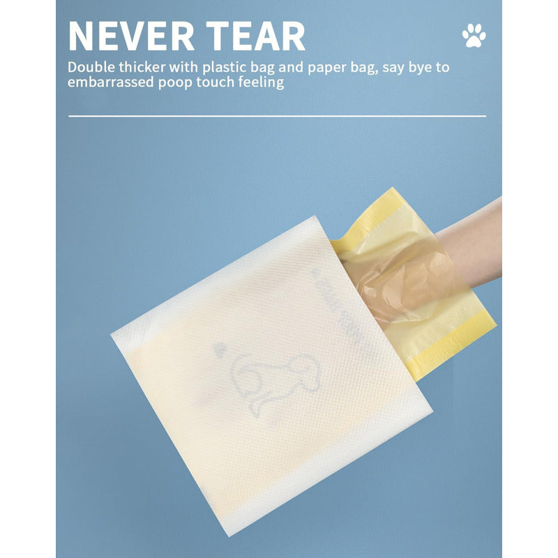 Bolsas Ecológicas de Doble Capa para Desechos de Mascotas Limpieza de Gluteos– 50 Piezas Mantén tus paseos con tu mascota siempre limpios, cómodos y sin olores con nuestras bolsas para desechos de mascotas de doble capa, diseñadas para ofrecer higiene, resistencia y respeto por el medio ambiente. Estas bolsas cuentan con un innovador diseño de doble capa: una bolsa interior de papel sanitario desechable para limpiar los gluteos de tu mascota y una bolsa exterior de plástico resistente y a prueba de fugas, garantizando una experiencia limpia y sin contacto directo con los desechos. Características principales: Diseño de doble capa opaca: evita que se vean los desechos y bloquea los malos olores, brindando una experiencia más higiénica y agradable. Bolsa interior de papel sanitario: fabricada con material biodegradable y totalmente desechable en el inodoro, lo que facilita la limpieza sin generar residuos adicionales. Bolsa exterior de plástico PE grueso: evita filtraciones o roturas, y puede utilizarse también como bolsa de basura común. Compactas y portátiles: su tamaño pequeño permite llevarlas fácilmente en la bolsa, el bolsillo o incluso en la mano, siendo más pequeñas que un teléfono celular. Textura antideslizante: la capa de papel tiene partículas en relieve que mejoran el agarre al momento de recoger los desechos y limpieza de tu masdcota Prácticas y seguras: ideales para usar en casa, en paseos al parque o durante viajes con tu perro. Beneficios: Mantén tus manos limpias y libres de olores. Evita la exposición directa a los desechos. Fáciles de usar y de desechar. Diseño ecológico y discreto. Reduce el impacto ambiental al poder desechar la capa interior directamente en el inodoro. Especificaciones: Material: Papel + Plástico PE degradable Tamaño de la bolsa interior (papel): 23 × 21.5 cm Tamaño de la bolsa exterior (plástico): 32 × 17.5 cm Contenido: 50 piezas por paquete Colores: Amarillo con detalles blancos Presentación: Paquete con diseño de perrito tipo Corgi Estas bolsas son la opción perfecta para quienes aman a sus mascotas y desean mantener una convivencia limpia, práctica y ecológica. Ya sea para uso diario o para viajes, son un accesorio esencial para dueños responsables.