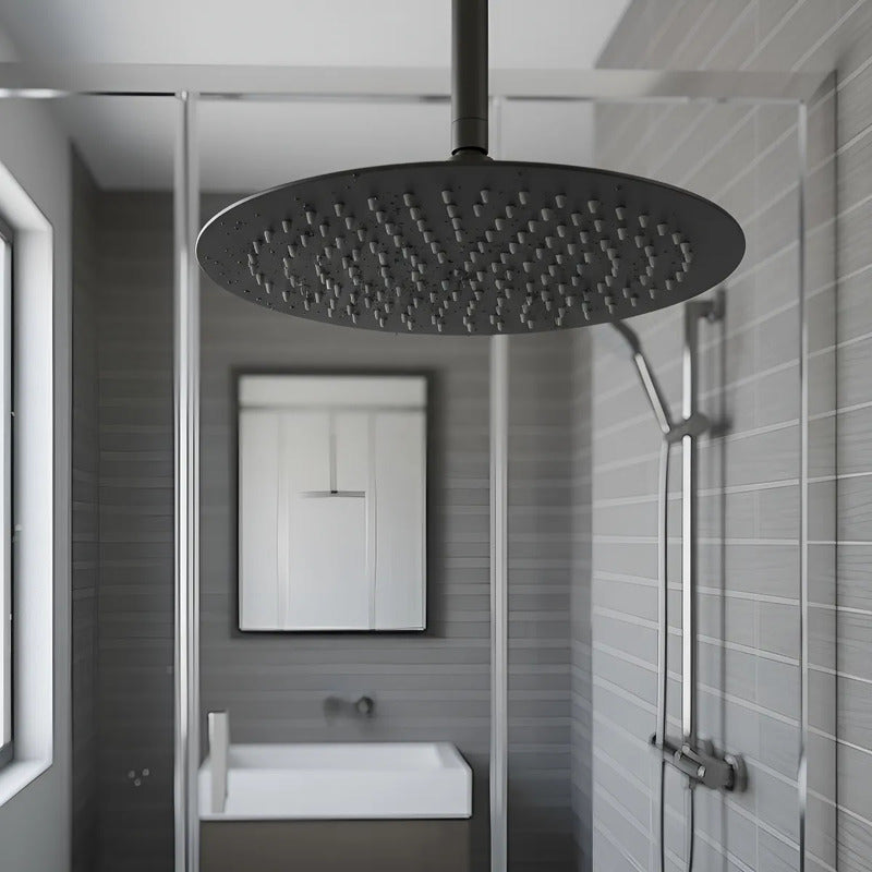 Regadera Redonda Para Techo 20x20cm En Negro Y Brazo 40cm Negro Mate