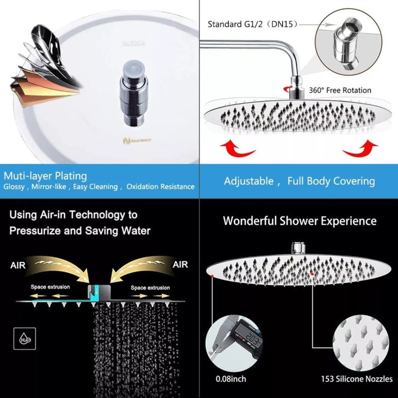 Regadera Redonda 12 Acero Inoxidable 30cm + Brazo Pared 43cm Plateado Cromado