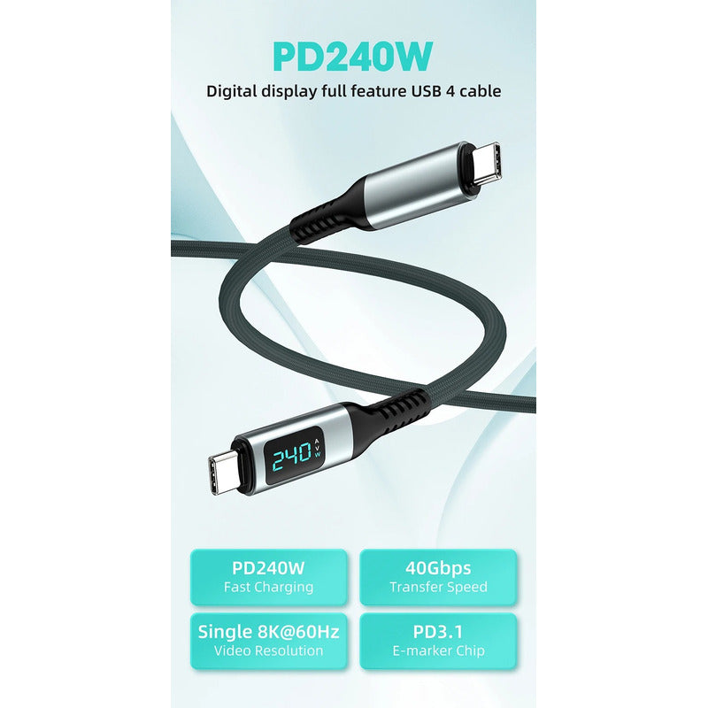 Cable Usb4 C A C240w Pantalla 40gbps Video8k Carga Rápida 2m