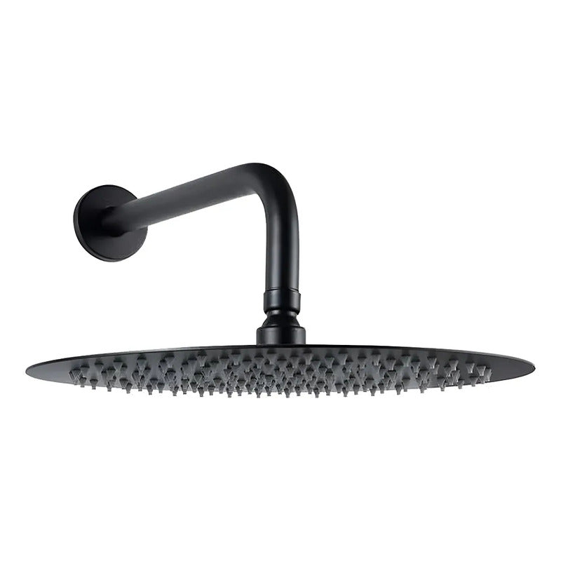 Regadera Redonda Tipo Lluvia 20x20cm Negro Con Brazo 40cm Negro Mate